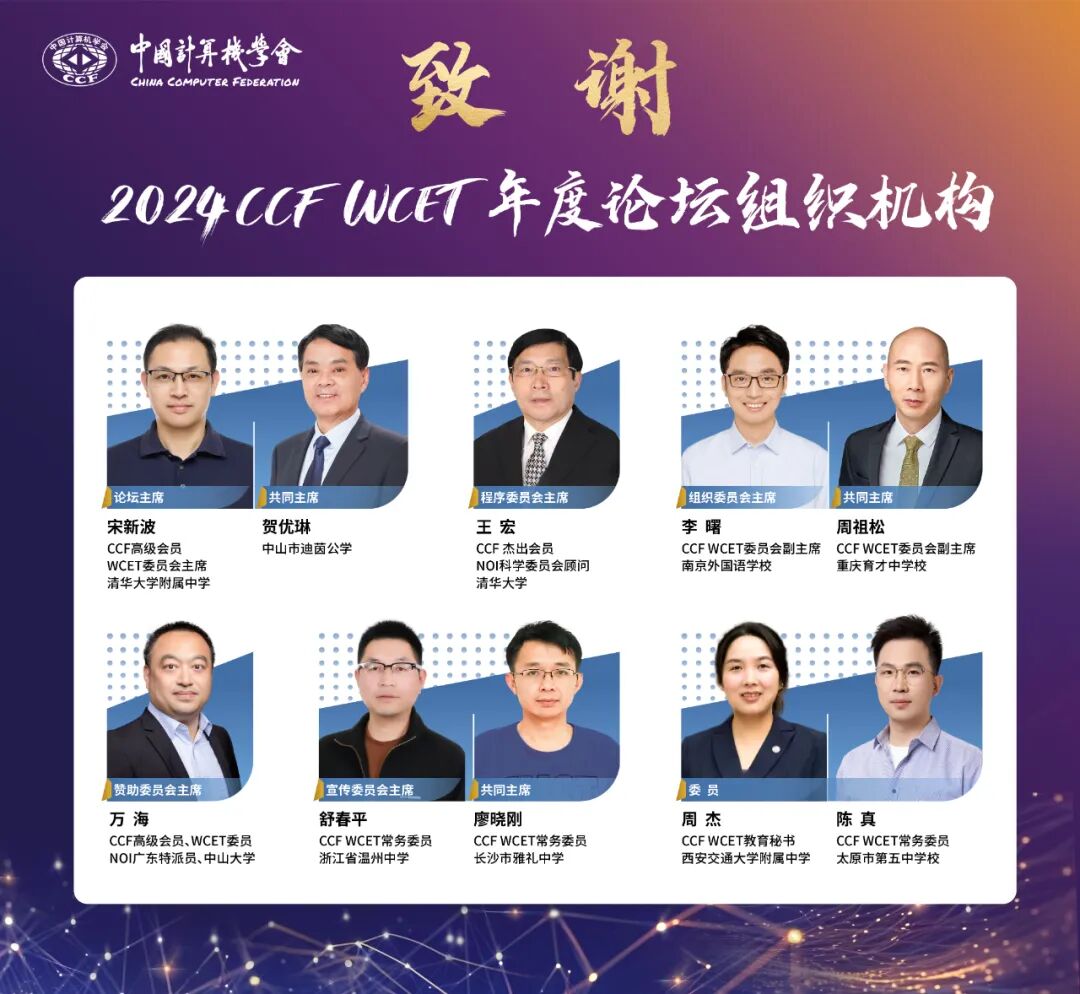 感谢2024WCET年度论坛组织机构全体成员。你们付出的辛劳是论坛得以顺利举办的强大保障。正是由于你们的无私奉献和持续努力,才使得本次论坛的筹备、组织和实施得以顺利进行,最终呈现出一场精彩纷呈、成果丰硕的盛会。从前期筹备、宣传推广、框架设计到嘉宾邀请、现场执行,每一个环节都凝聚了你们的心血。你们的付出赢得了与会教师的广泛赞誉,也为WCET年度论坛的举办树立了新标杆。